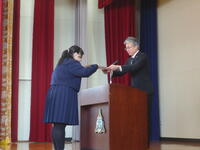 全校集会では、校長から全校生徒に向けて、これまでの学びから更なるステージに飛躍するため、多くのことに挑戦してほしいとエールを送りました。また、今日から通常日課となることから、心身ともに生活のリズムを調えるよう話がありました。最後に、各分掌部長から学校生活に向けたアドバイスを生徒に伝えました。伝達表彰では、各種大会等で優秀な成績を収めた吹奏楽局への表彰が行われました。