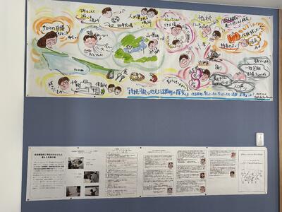 展示内容は「『持続可能な地元佐呂間町の探究』佐呂間町に残したいもの、守りたいもの、課題・資源は?」について、グループワークの様子を描いたグラフィックレコーディングやご指導いただいた各先生から佐呂間高校生3年生の「おもい」に向けたアドバイス等、授業の様子が掲載されています。お時間がありましたら、ぜひご覧ください。なお、授業内容の詳細は本校の公式noteに掲載しています。