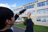 生徒は課題である「校舎の高さを測る」ため、各グループが趣向を凝らして計測を行い、結論及び結論に至るまでの過程について説明を行いました。