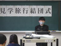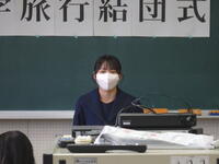 はじめに、クラスを代表して委員長から引率団団長(校長先生)に見学旅行に臨む決意を伝えました。続いて、団長及び引率団からの挨拶、生徒一人一人から見学旅行に向けた抱負を発表しました。