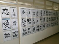 3年教室前には、生徒自身が今の気持ちをしたためた「書」が掲示されています。