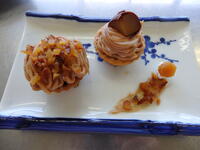 3年選択授業「フードデザイン」で行われた調理実習の成果物(一部) です。生徒は食材を確認しながら手際よく調理をしていました。
