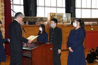 全校集会では冬季休業を迎えるにあたり、校長から後期の学校生活を振り返り、この期間を自身の成長を確認したり、新しいことに挑戦する貴重な時間としてほしいとの話がありました。また、吹奏楽局や新生徒会執行部の活動に対し、これまでの取組やこれからの活動に対してエールを送りました。各分掌部長からは、長期休業に向けた取組について話がありました。伝達表彰では、各種大会等で優秀な成績を収めたバドミントン部・放送局及び有志グループへの表彰が行われました。